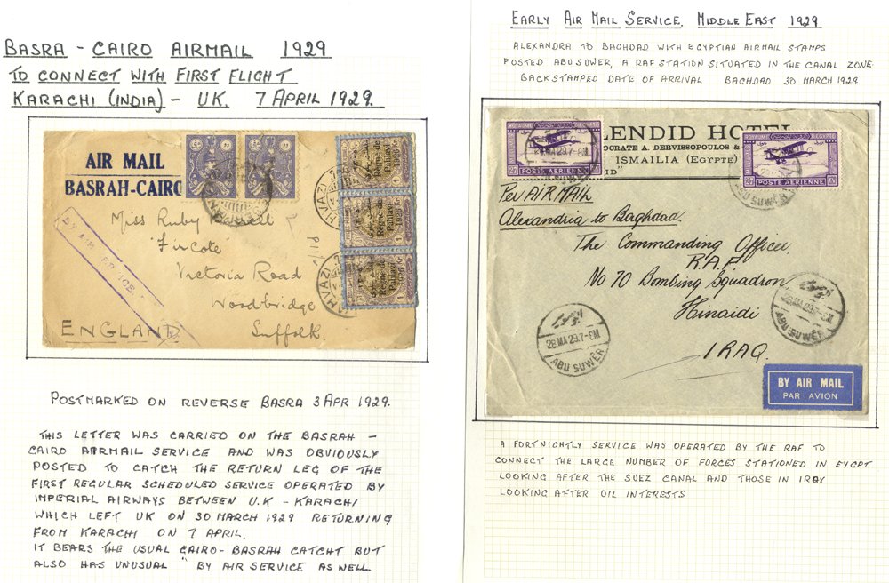 Australia & N. Zealand: Study of the air route to Australia 1931-38 with early flight covers inc 1932 Xmas; also NZ Trans-Tasman group (3) and study of the Empire ‘All-Up’ service. (35 & some photos)