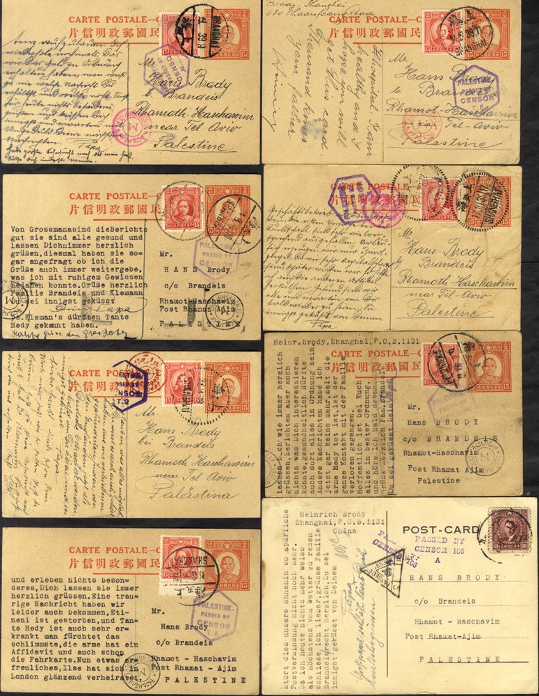 World War Two: Miscellany of covers & cards mostly with censorship interest inc Palestine censor on incoming Shanghai (8) & Luxemburg cards, ‘service suspended’ item Palestine - Shanghai, service mail incl. Middle East interest, POW letters, German censors, post-WWII Israeli censored covers etc. (90)