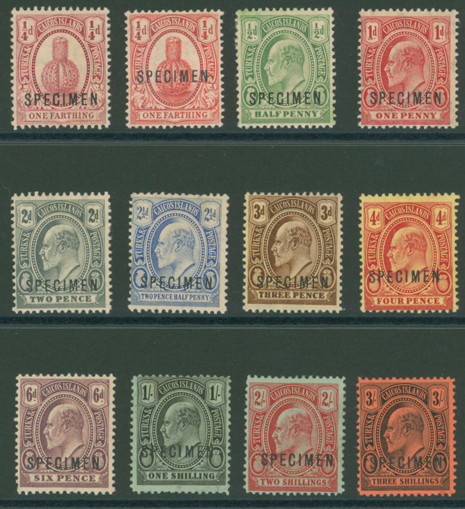 1909-11 MCCA set optd SPECIMEN, part o.g, odd minor tones, 1d creased, generally fine set with fresh colours. SG.115s/126s. Cat, £275.