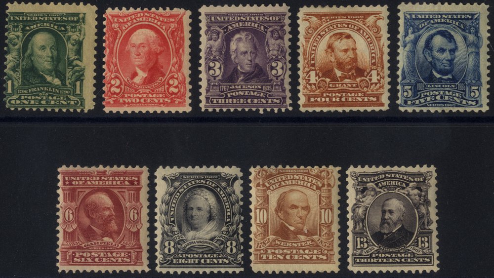 1902-08 Presidents Regular issue 1c to 13c part o.g. fresh appearance, (9). SG.306/314, Cat. £490