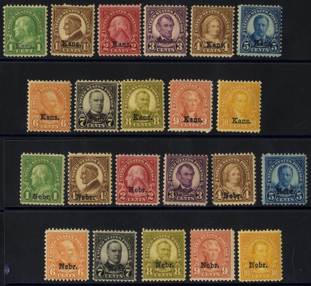 1929 State overprinted sets 'Kans' fine M set 'Nebr' UM set, (22). SG.655/676, Cat. £600