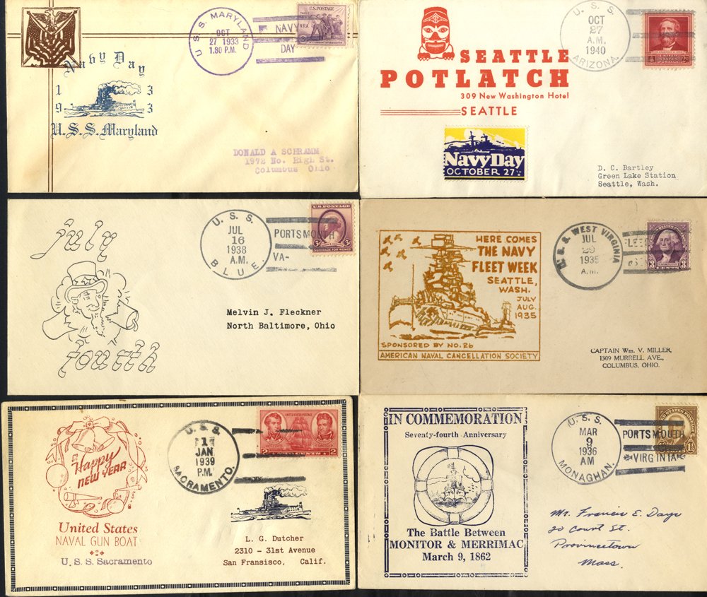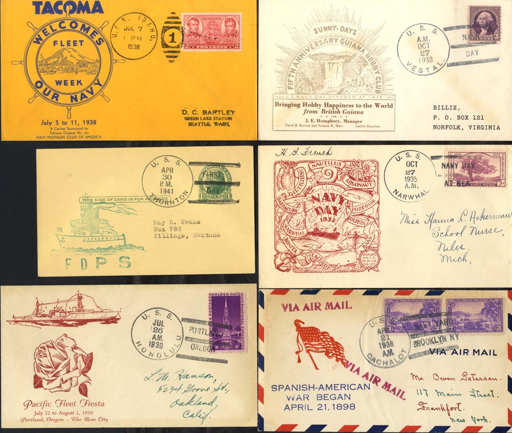1941 Pearl Harbour collection housed in hagner leaves of special event commemorative covers with Pearl harbour connections, pmks for U.S.S. Arizona Navy Day, Here Comes the Navy Fleet Week U.S.S. West Virginia, Fleet Week U.S.S Idaho, Navy Day U.S.S Narwhal, U.S.S. California etc. A4 size of photocopies of the the vessels incl.