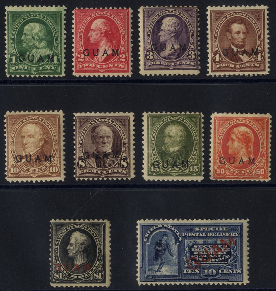 GUAM 1899 1c to $1 (excluding 5c & 6c) o.g. or part o.g. (50c gum faults), from SG.1/13 plus 1899 Special Delivery 10c indigo o.g. (10). SG.E15, Cat. £1440