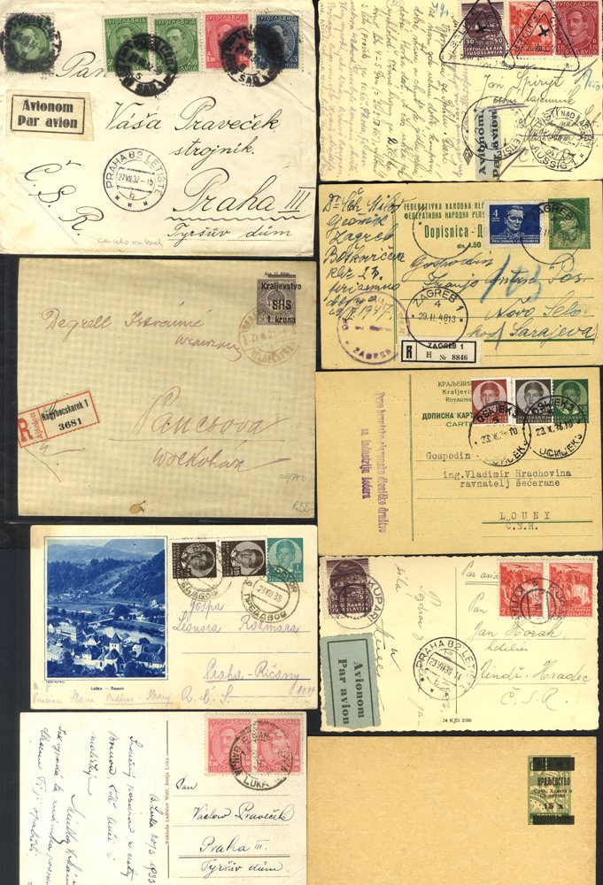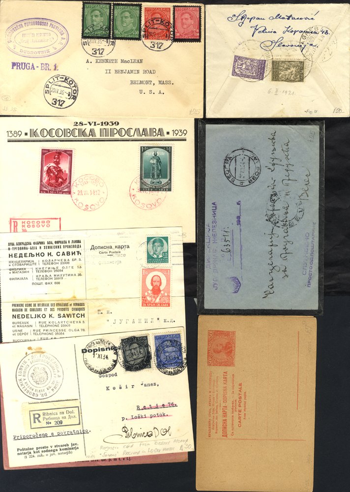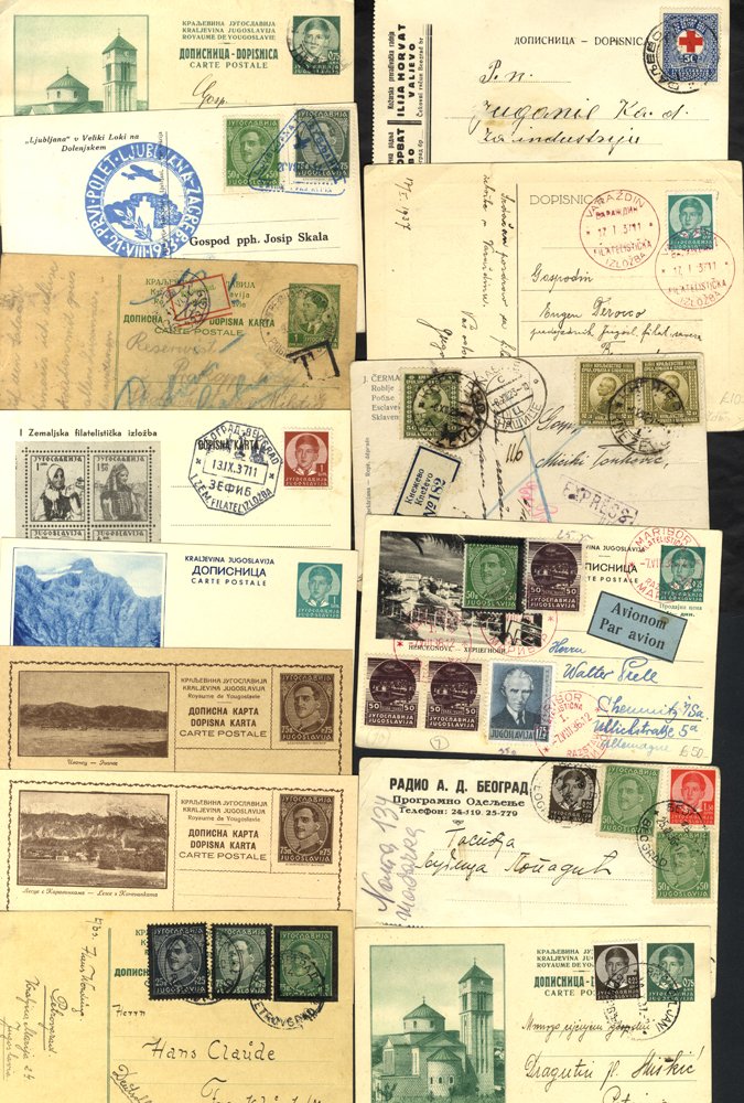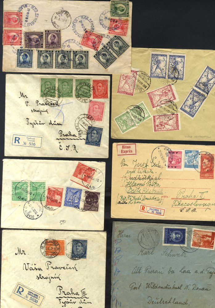 1921-41 selection of 24 covers & cards, several registered, incl. 1923 picture postacrd from Knezevo also sent express. Varied frankings with may commemorative & a mixed Alexander & Young Peter issues. (24)