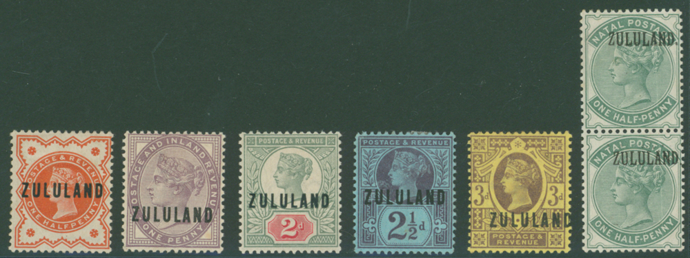 1888-93 short set of 5 ½d to 3d M, SG.1/5, also 1888 opt on Natal ½d green (with stop) vertical pair M - Vertical crease affects both, lower stamp UM. SG.12. Cat. £388. (7)